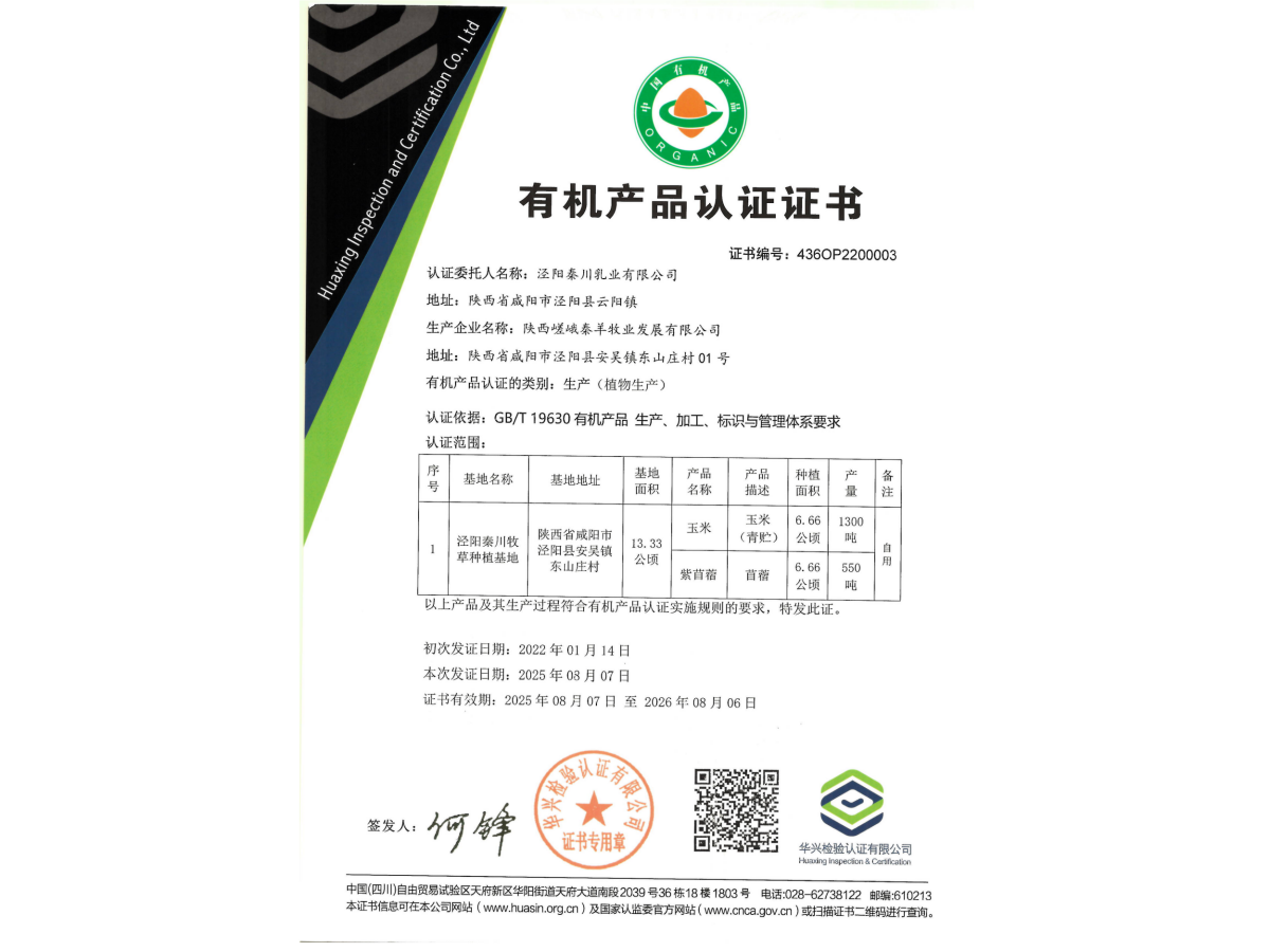 有机产品认证证书